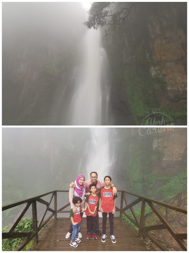 Lokasi pertama kami adalah air terjun SikuLikap. Kitorang sampai sini dalam pukul 3.30 petang, agak lewat sebab berhenti lama masa singgah makan tengah hari. Masa sampai sini, cuaca hujan gerimis yang buatkan kawasan ni lebih sejuk dengan kabus tebal.