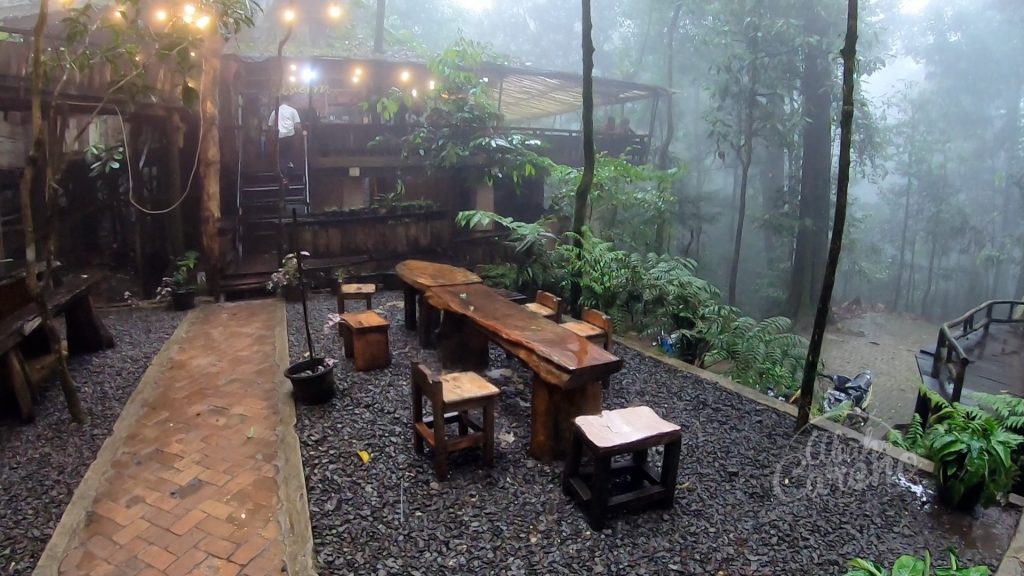 Kat sini jugak ada port ngopi dalam hutan. Tempat dan suasana yang sangat unik, vibe rimba di alam bunian. Dengan persekitaran sejuk dan redup, memang best kalau pekena kopi panas dengan pisang goreng.