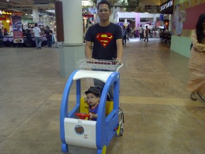 Memandangkan Akiff tak suke duduk dalam stroller lagi… So, aku sangat setuju kalau semua shoping kompleks sediakan kemudahan macam ni… Free plak tu… senang mak bapak nak shoping… Konon-konon dia yang drive la tu… Lokasi ni kat Jusco AU2, Setiawangsa…
